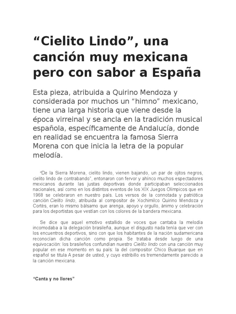Cielito Lindo Pdf Mexico Cultura General